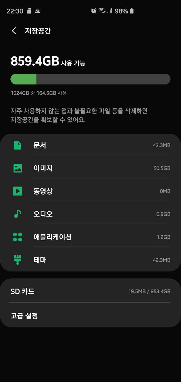 갤럭시s10+ 1TB모델은 정말로 1TB가 들어있다.